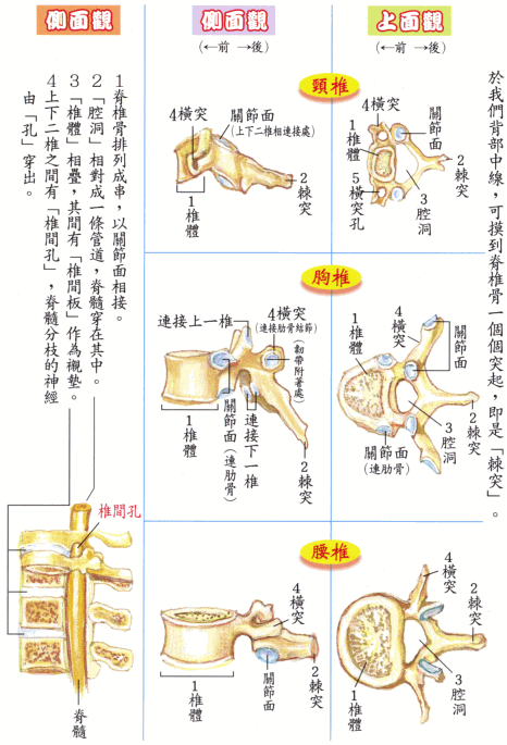 ·我们的脊椎骨,虽每块形状略异,但有基本相同之构造: