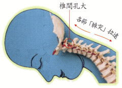 └矫正颈椎,(解除神经、血管、淋巴管及脑脊髓之压迫)