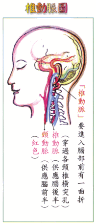 ·很多长年仰头工作(如开车、漆油漆、采槟榔、打电脑者)有此现象。如果久久不改善,脑必衰退,而有‘老年失智症’,甚至未至老年,就相当昏沉、记忆、脑力大衰,此皆源于椎动脉受阻之害(缺血又缺氧)。