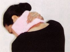 *缩紧严重者,可以用很烫的毛巾,连后颈和耳热敷(热敷时,须垂首方有效)肌肉放松,才不会持续加压于血管、神经。(详参本章末附录图文)