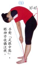 (4)也有人小腿虽直,重心放在足跟,却蹲不下去,无法弯腰。这是腰下部脊椎太僵紧,(腰荐关节)一时拉不开。(多练则慢慢开)